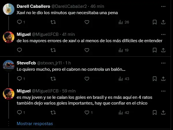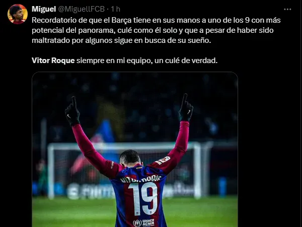 O jovem fez a estreia na equipe de cima em outubro do ano passado, quando Xavi Hernández ainda estava no comando. O prodígio normalmente estava na frente de Vitor Roque nas alternativas do ex-treinador.