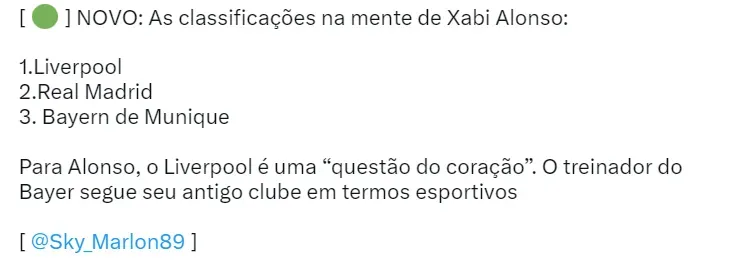 De acordo com informações de Santi Aouna, Xabi Alonso está se aproximando cada vez mais de se tornar o novo treinador do Liverpool para a próxima temporada.