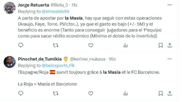 De acordo com a ESPN, sete dos jogadores que estavam na final passaram pelo sistema de formação de jovens do Barcelona. Além de Fermín López, Eric García e Pau Cubarsí, outros quatro jogadores treinados na La Masia também foram essenciais: Arnau Tenas, Abel Ruiz, Juan Miranda e Sergio Gómez.