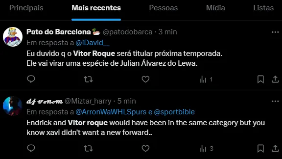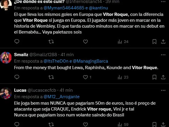 Dados e estatísticas do Transfermarkt dão conta que Vitor Roque soma dois gols em 11 jogos disputados pelo Barcelona na atual temporada. Ele chegou em janeiro ao clube da Catalunha.