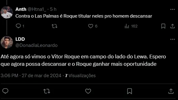 Vitor Roque ainda está sem a titularidade garantida no Barcelona, principalmente por concorrer com Lewandowski. Entretanto, desconforto do polaco pode o deixar fora do compromisso na La Liga.