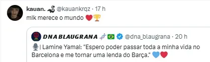 Yamal diz que gostaria que Nico Williams jogasse no Barcelona