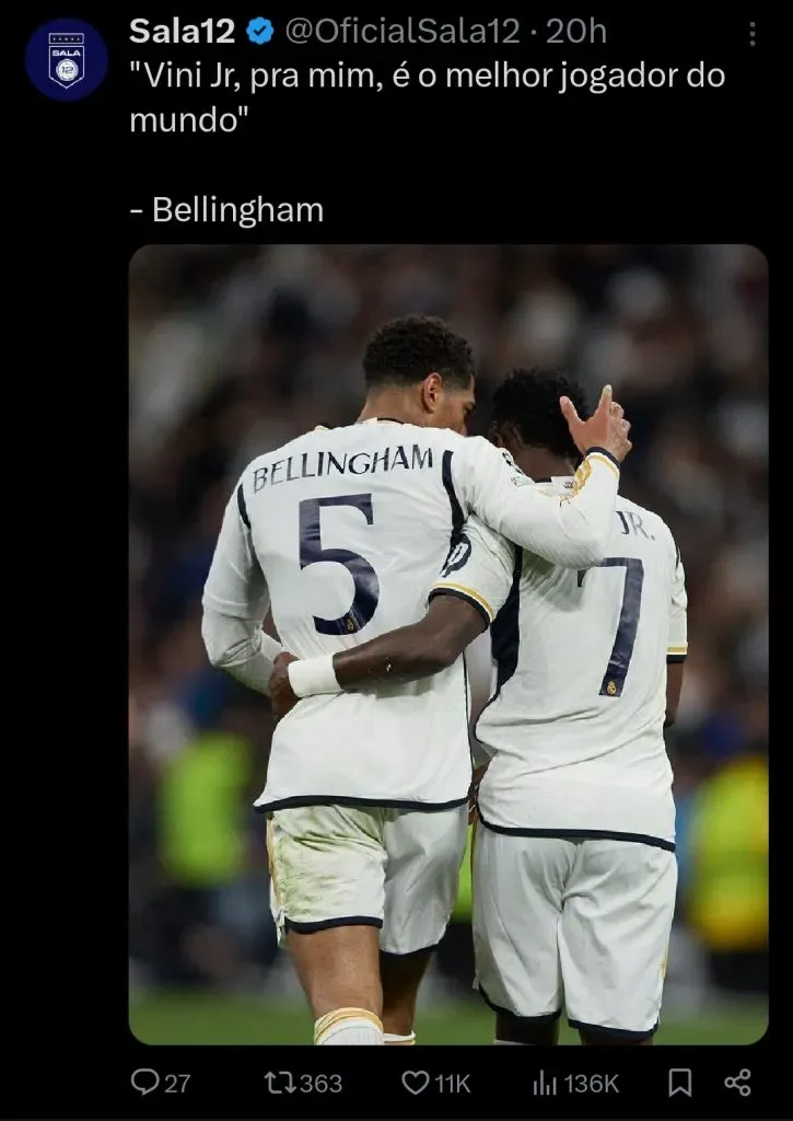Bellingham rapidamente se tornou uma peça fundamental na equipe do Santiago Bernabéu. O meio-campista conseguiu chegar ao status de um dos melhores jogadores do mundo na atualidade. Há quem entenda que Haaland está na frente de toda a concorrência.