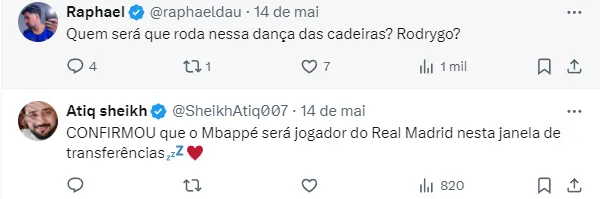 “Mbappé? Será do Real Madrid no próximo ano. Ele é um dos melhores jogadores do mundo, tal como Vinicius e Bellingham. O Real Madrid terá um grande elenco” Javier Tebas, em entrevista ao Diário Olé, da Argentina.