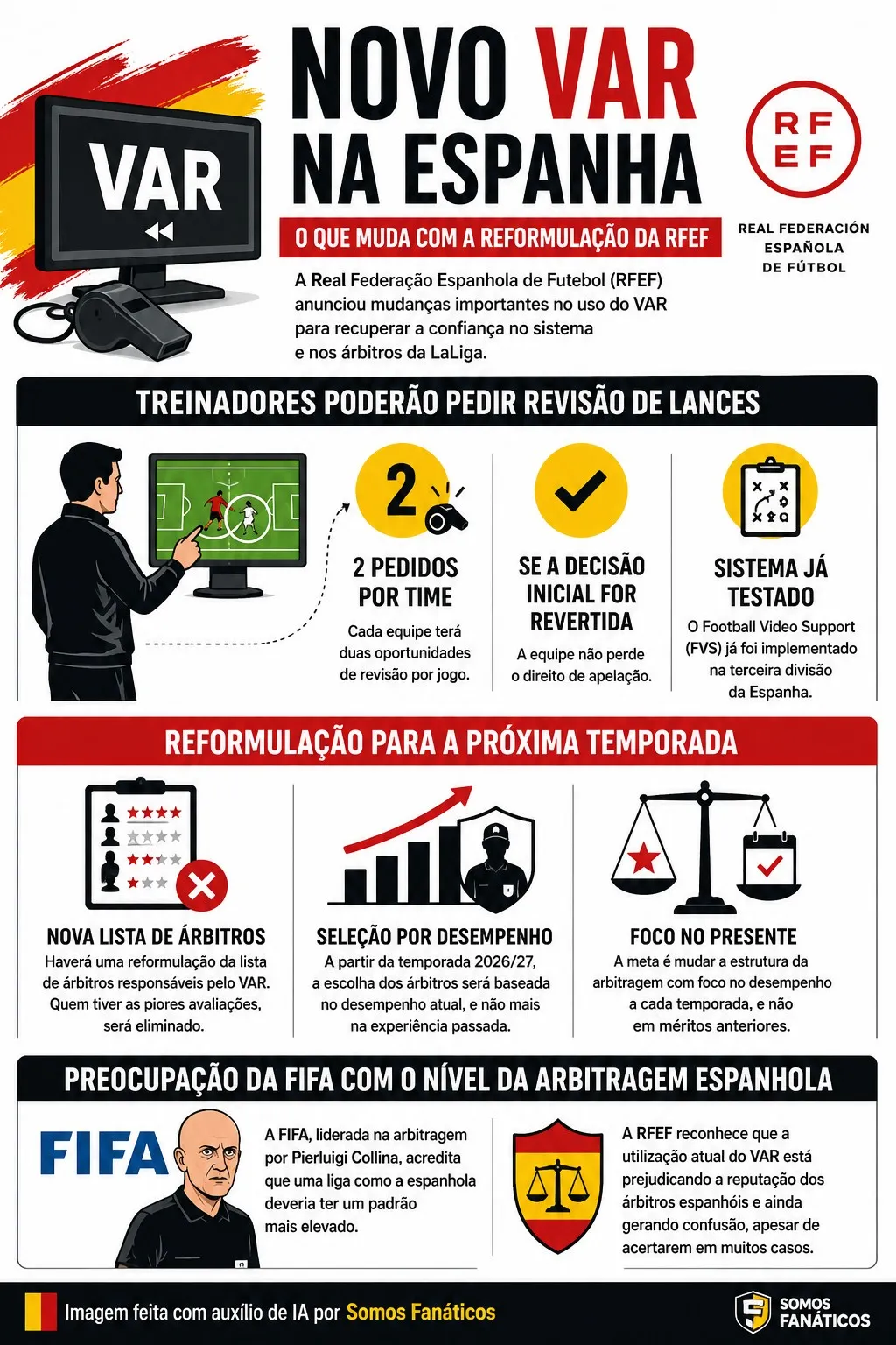 A Real Federação Espanhola de Futebol (RFEF) define uma reformulação do VAR para recuperar a confiança perdida nos árbitros, e considera permitir que os treinadores solicitem revisões, segundo o jornal As.