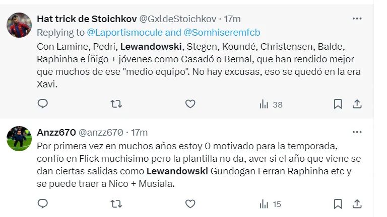 Ele também mencionou seus objetivos para a temporada. “Quero ganhar títulos com o Barcelona. Esse é o principal objetivo e o que me motiva. Ver a alegria dos torcedores ao ganharmos títulos como a La Liga ou a Supercopa me dá ainda mais vontade de vencer,” afirmou Lewandowski.