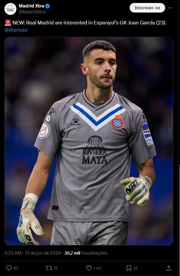 Nos bastidores, a renovação de Lunin, que deve seguir na reserva de Courtois, está encaminhada. Enquanto isso, outro goleiro se destaca no futebol espanhol e chama a atenção dos merengues.