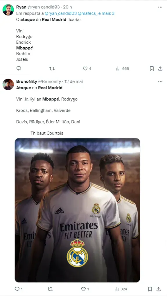 O dirigente aproveitou para exaltar o elenco que o técnico Carlo Ancelotti terá em mãos. “Mbappé? Será do Real Madrid no próximo ano. Ele é um dos melhores jogadores do mundo, tal como Vinicius e Bellingham. O Real Madrid terá um grande elenco“, afirmou.