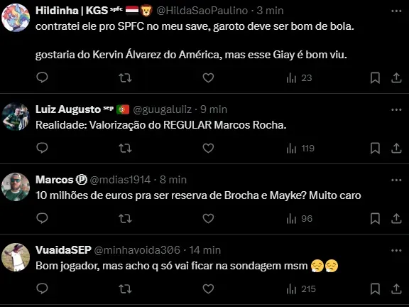 River Plate, Toronto e Benfica são outras equipes que já buscaram informações sobre Giay. Caso avance nas conversas, o objetivo do Verdão é fechar o acordo na próxima janela de transferências.