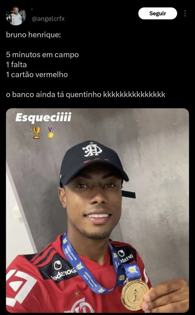 BH entrou na partida desta semana aos 35 minutos do segundo tempo, e precisou deixar o campo aos 38, após o VAR chamar o árbitro para revisão da sua entrada no adversário.