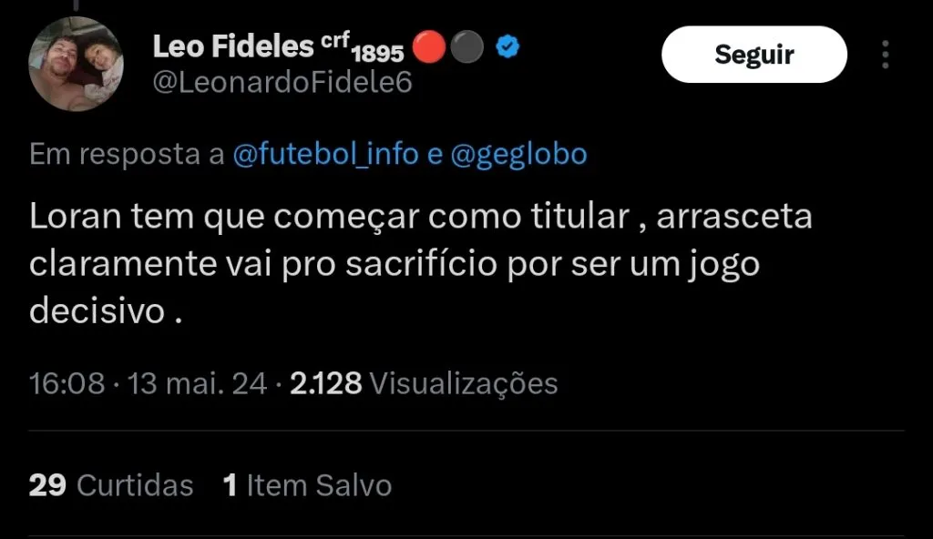 O jornalista Venê Casagrande informa que o Flamengo não poderá contar com Bruno Henrique e Pulgar para o duelo desta Quarta-feira.