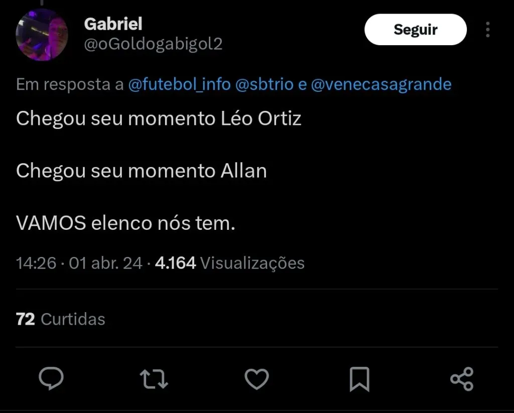 No momento, Tite ainda não definiu quem pode vir a substituir os jogadores durante o duelo continental. Na zaga, Léo Ortiz pode estar fazendo sua estreia oficial com as cores do Rubro-Negro.