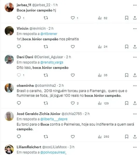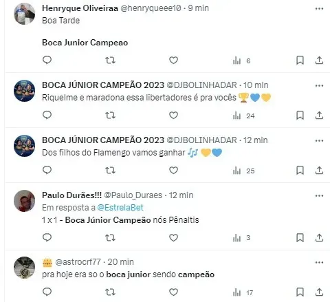 “Me pediram para dar meu palpite sobre a final da Libertadores. E é simples. Acho que o jogo vai terminar 0 a 0. Será uma partida travada, típica de uma final, sabe como é? Nos pênaltis, o Boca é diferente. E se olharmos para o histórico do Fluminense, especialmente em disputas de pênaltis na Libertadores, acho que vai dar Boca”, afirmou Casimiro.