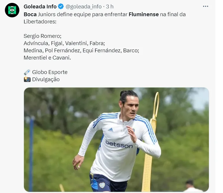 “Quem vencerá a Libertadores de 2023 entre Fluminense e Boca Juniors? Na minha opinião, o time Boca Juniors tem a vantagem, com energia de virada, transformação e sorte”, disse ele.