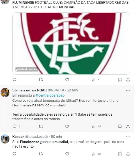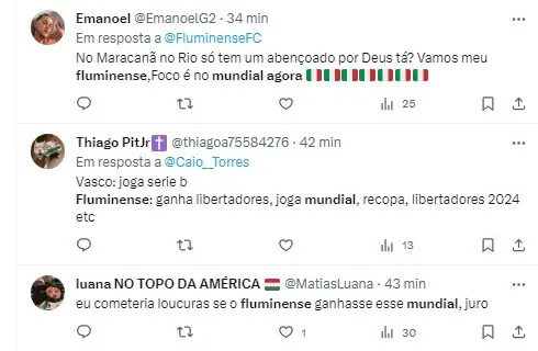“Fluminense vai disputar o Mundial, coisa que o Palmeiras não vai, Flamengo não vai e o Internacional não vai! Fluminense vai ser campeão do mundo!” disse o apresentador, demonstrando otimismo em relação ao desempenho do Fluminense no torneio internacional.