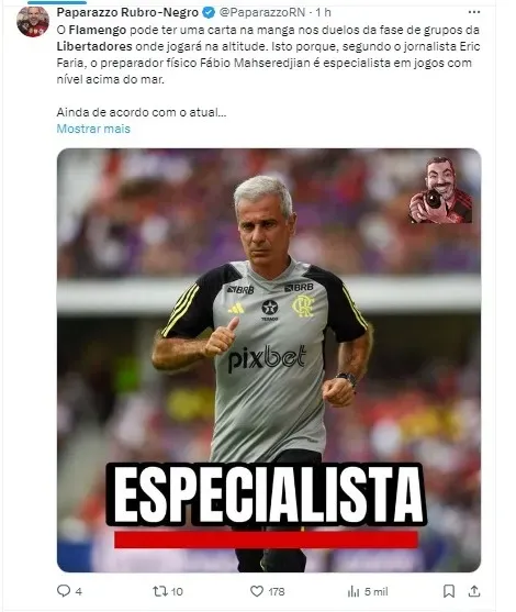 Durante uma participação em uma transmissão ao vivo do UOL Esporte no YouTube, realizada ontem (18) durante o sorteio da fase de grupos do torneio, PVC foi questionado sobre suas previsões para os finalistas e o possível vencedor da Libertadores em 2024.