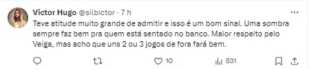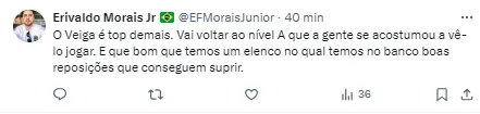 Veiga estaria desgastado pela quantidade de partidas até aqui. Nesta temporada, o jogador atuou em 18 jogos, com sete gols e quatro assistências anotadas para seus companheiros.