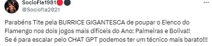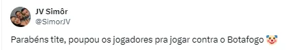 “Bota o time todo no carioca, e agora na competição principal do ano ele fica poupando. PARABÉNS”;