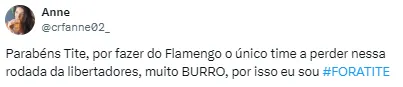 “#FORATITE, quero esse técnico longe do meu time”