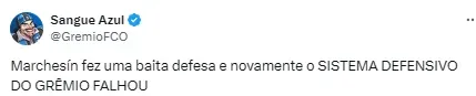 “Marchesin dá zero confiança no gol do Grêmio”;