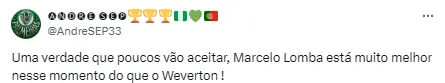 “Que partida incrível Marcelo Lomba fez hoje. Ele sem dúvidas merece mais oportunidades”;