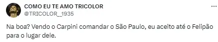 “Na boa? Vendo o Carpini comandar o São Paulo, eu aceito até o Felipão para o lugar dele.”;