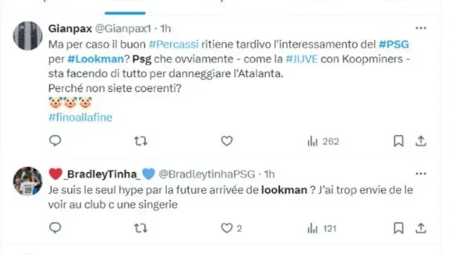De acordo com a La Gazzetta dello Sport, o PSG está interessado em Lookman e pediu informações sobre ele. Esse interesse pode ter influenciado a decisão do jogador de não participar do jogo contra o Lecce.