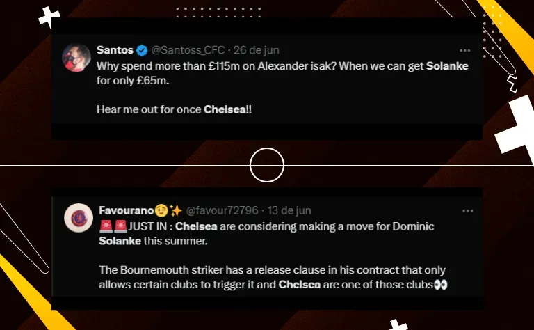 Ainda de acordo com a mesma fonte, a diretoria do Bournemouth acredita que Solanke irá permanecer no clube, onde está desde 2019. O jogador renovou contrato com os Cherries em setembro do ano passado.