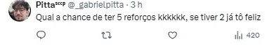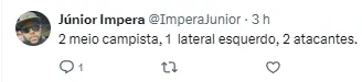 Em entrevista ao programa Zona Mista do Hernan, no canal do portal UOL, segundo o treinador português, ele vê a necessidade pelo menos de cinco a seis reforços no mercado da bola.
