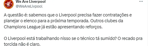Com o técnico Arne Slot no comando da equipe, agora o Liverpool se mantém atento ao mercado da bola para reforçar seu elenco.