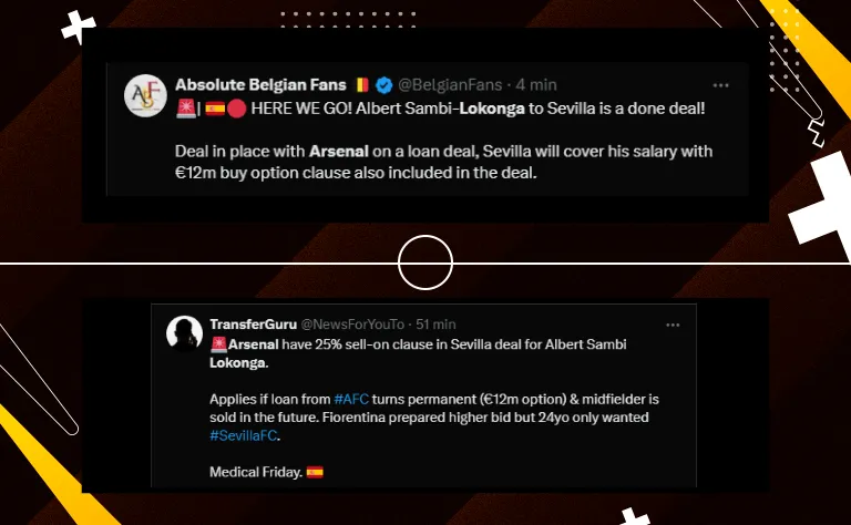 Além do Sevilla, outra equipe interessada em Albert Sambi Lokonga foi a Fiorentina. A equipe italiana preparava uma proposta superior, mas o atleta já estava decidido a se transferir para o clube espanhol e fez valer sua vontade.