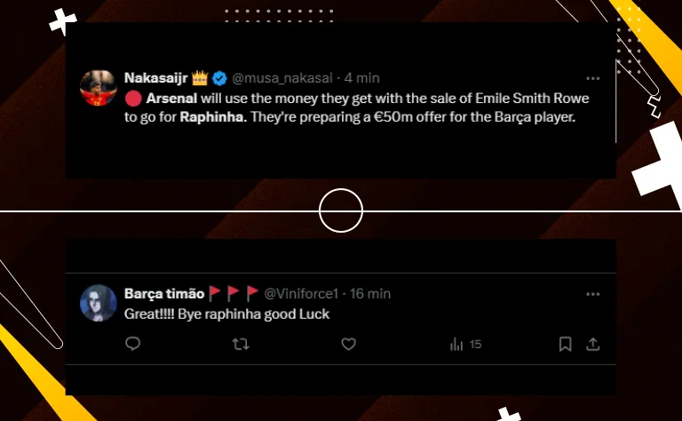 Raphinha perdeu espaço no Barcelona no decorrer da última temporada. No Arsenal, o jogador não chegaria com vaga garantida nos 11 iniciais, isso porque a equipe conta com Bukayo Saka, Leandro Trossard e Gabriel Martinelli para as pontas.