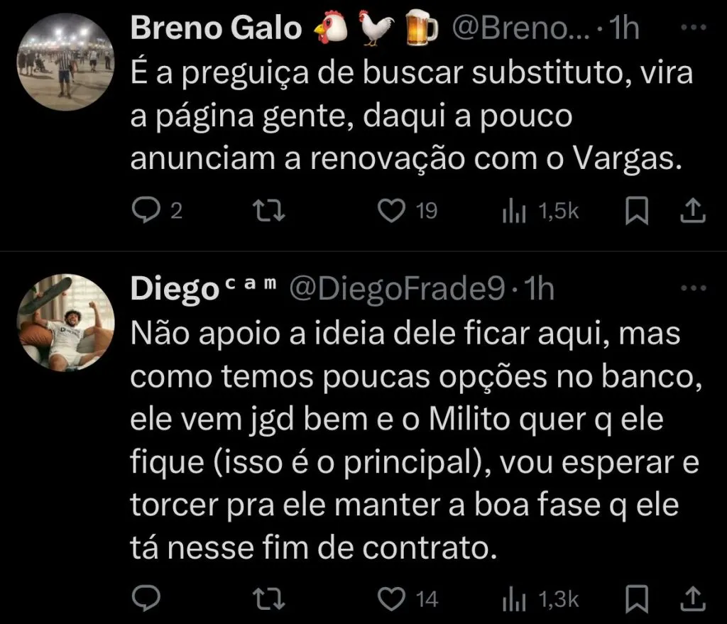 Segundo o portal Fala Galo, o futuro de Pedrinho pode ser a continuidade no Galo mesmo após o término do empréstimo. A situação deve ser resolvida nos próximos dias.