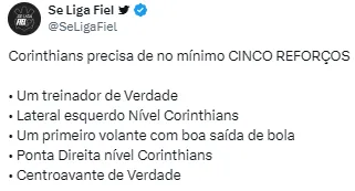 Até então, o Corinthians reforçou o elenco de António Oliveira com 11 jogadores e gastou 128,5 milhões assim como divulgou o próprio clube.
