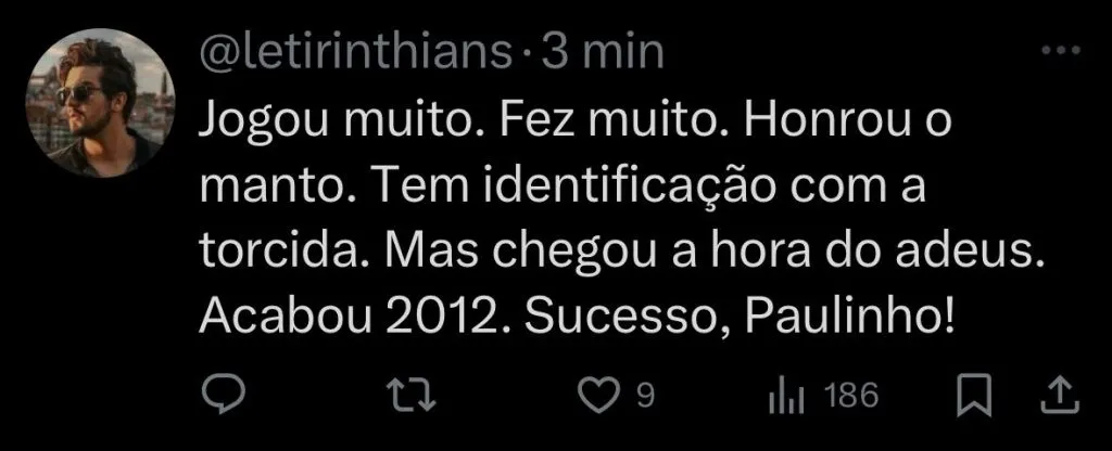 Nesta tarde, o Corinthians anunciou que o clube e Paulinho decidiram não renovar o contrato, o qual se encerraria em pouco mais de 40 dias.