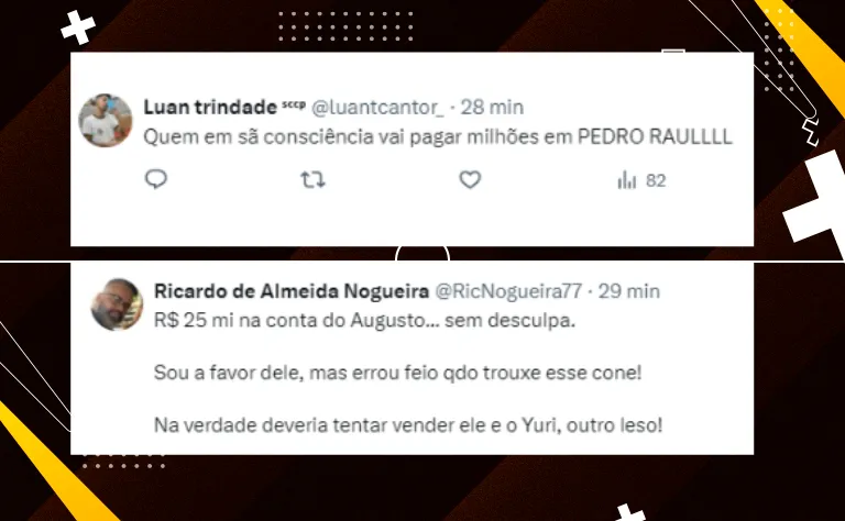 Ainda assim, a diretoria segue observando o mercado, já que não confia em Pedro Raul e procura uma alternativa para Yuri Alberto, como informou o jornalista Lucas Musetti, do portal UOL.