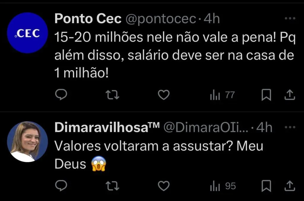 Em busca de um centroavante, o Cruzeiro cogitou a contratação de Arthur Cabral, ex-Palmeiras, que atualmente está no Benfica. No entanto, a pedida do clube português pelo jogador fez com que o clube mineiro recuasse nas tratativas. O Benfica pediu entre €15 milhões (R$85,6 milhões na cotação atual) e €20 milhões (R$114,1 milhões) para negociar o centroavante brasileiro. A informação é do jornalista Thiago Fernandes, do GOAL.