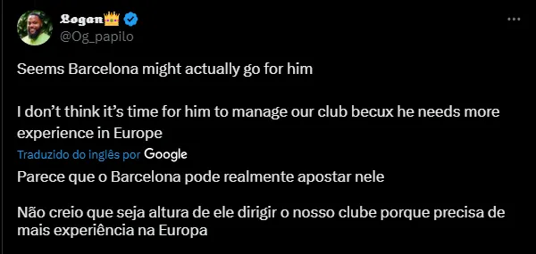 Já a proposta do Barcelona se deve ao mau momento de Xavi Hernández no Camp Nou. Por isso, o italiano, conhecido pela sua proposta de futebol ofensivo e de posse de bola, seria uma aposta que combina com o estilo de jogo catalão.
