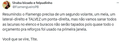 Tendo a possibilidade de perder Wesley na janela de transferências, a diretoria do Flamengo está atenta ao mercado da bola para o restante da temporada. Por outro lado, cancela a continuidade de campeão.