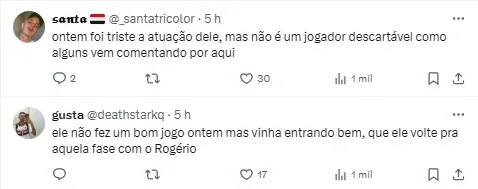 “Estou focado no São Paulo, em dar o meu melhor. O que se fala fora, podem falar um monte de coisas. Estou com a cabeça aqui, trabalhando. Quero muito ajudar o time. Minha cabeça está aqui“, inicio o jogador.
