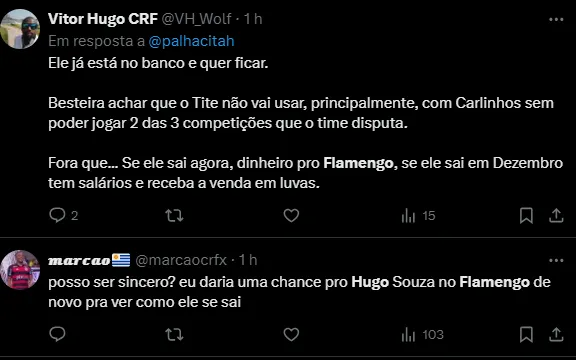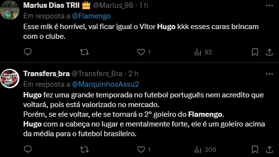 Emprestado pelo Flamengo ao Chaves, de Portugal, o goleiro Hugo Souza se destacou principalmente na partida que defendeu três pênaltis do Benfica. Isso repercutiu no mundo todo. A opção de compra estava em R$ 6 milhões por 50% dos direitos do jogador. No entanto, não deve ser ativada.
