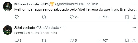 Vale lembrar que o Palmeiras fixou uma multa rescisória no jogador avaliada em 55 milhões de euros (aproximadamente R$ 309 milhões na cotação atual).