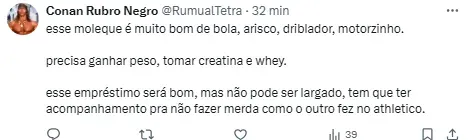 Vale lembrar que o atleta chegou a ter um empréstimo encaminhado ao Santa Clara, de Portugal, após se destacar na Copinha no começo do ano. Porém, a negociação não tinha compensação financeira e só opção de compra de 1 milhão de euros (cerca de R$ 5 milhões), e foi cancelada pela diretoria, segundo o GE.