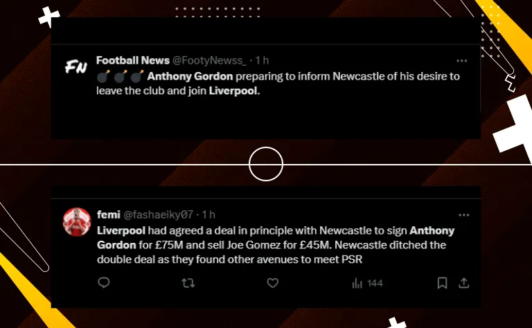 O atleta foi especulado nos Reds há alguns meses, quando os Magpies estavam em situação financeira ruim e precisavam negociar jogadores. Porém, a equipe arrecadou 75 milhões de libras com as vendas de Minteh e Elliot Anderson, o que amenizou a situação envolvendo possíveis punições por conta das Regras de Sustentabilidade Financeira (PSR) da liga.