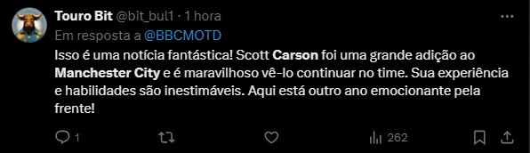 Já Txiki Begiristain, diretor de futebol do clube inglês, falou sobre o papel que o goleiro tem realizado, mesmo sem atuar. “Scott tem sido importante para o nosso sucesso nas últimas temporadas, apoiando seus companheiros de equipe e treinando duro como parte de nossa excelente unidade de goleiros“, disse.