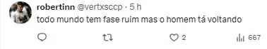 Vale lembrar que, no começo do ano, ainda sob o comando de Mano Menezes, o começo foi conturbado para o jogador e ainda teve uma discussão com o treinador. Pouco a pouco, ele vem deixando de lado momento abaixo para ajudar o time.