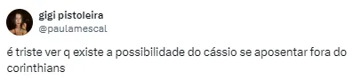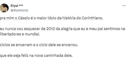 Carlos Miguel tem sido titular e o Corinthians enxerga que ele está pronto para isso, mas quer que Cássio faça parte dessa transição para que ele se firme na posição. Outro fator principal para manter Cássio é planejar uma despedida ideal para o jogador, segundo o GE.