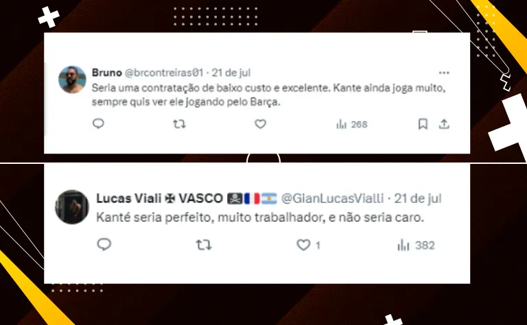 Kanté está defendendo as cores do Al-Ittihad, da Arábia Saudita desde julho do ano passado e possui contrato até junho de 2026. Pelo Transfermarkt, portal de transferências, ele é avaliado em € 9 milhões (R$ 56 milhões)