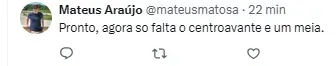 Por outro lado, também observa jogadores para fazer contratações na próxima janela, que abre no dia 10 de julho. Agostín Giay, do San Lorenzo, é um alvo, mas o clube não deve ter vida fácil para contratá-lo. Isso porque, o clube espera receber entre US 7 milhões (R$ 36,7 milhões) e US 10 milhões (R$ 52,5 milhões) para fazer negócio, segundo o GE.