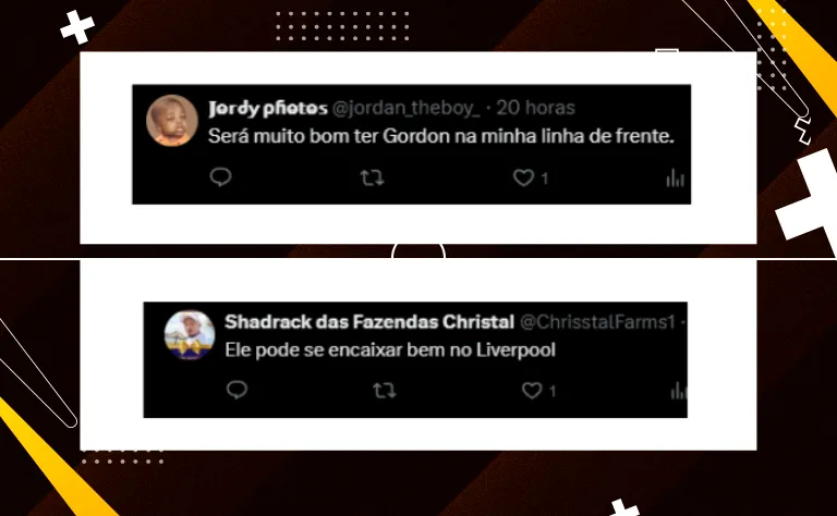 “Em junho, o Newcastle estava com problemas com o Fair Play Financeiro e foi abordado pelo Liverpool por Gordon. O jogador estava interessado na mudança. Mas o time não aceitou as ofertas e foi apenas uma troca, não uma oferta formal”, comentou Fabrizio em seu canal no youtube.